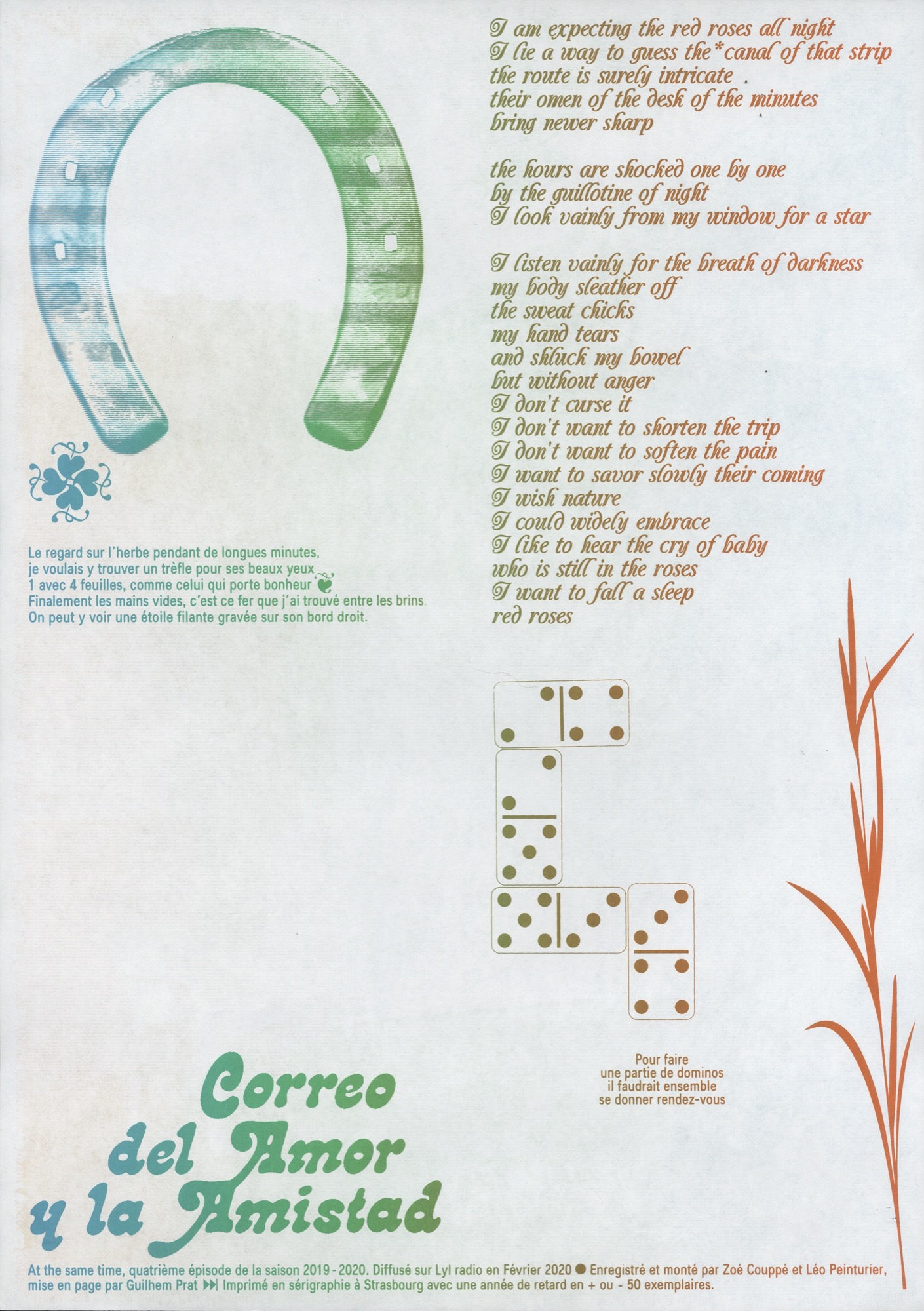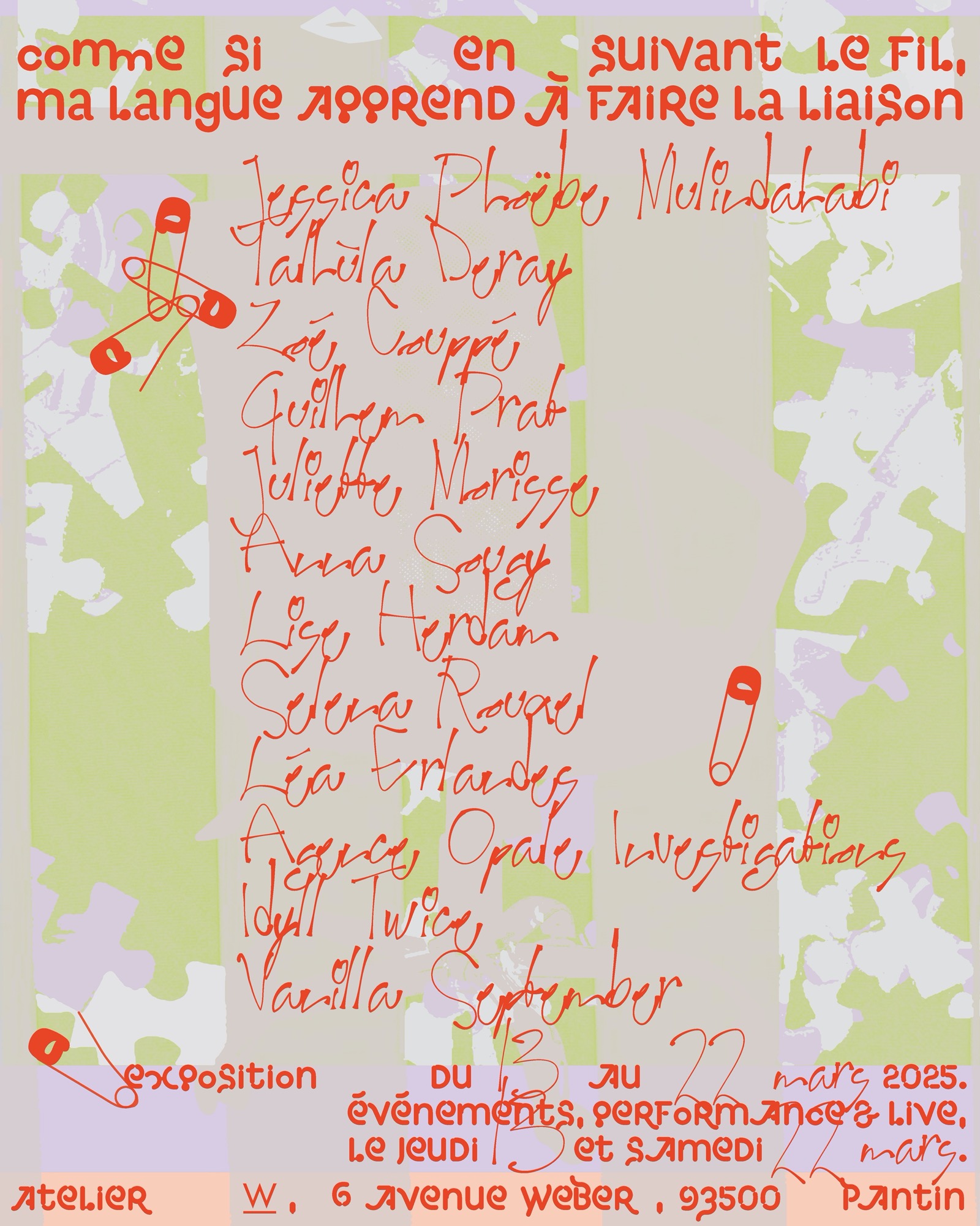 affiche pour l'exposition "comme si en suivant le fil, ma langue apprend à faire la liaison"